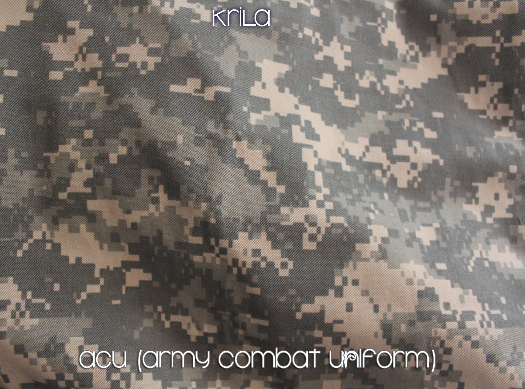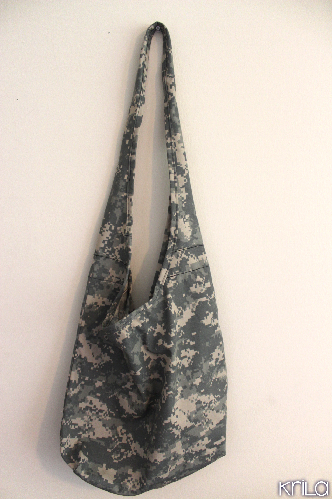 Made from ACU (Army Combat Uniform) fabric. Print will vary from bag to bag.